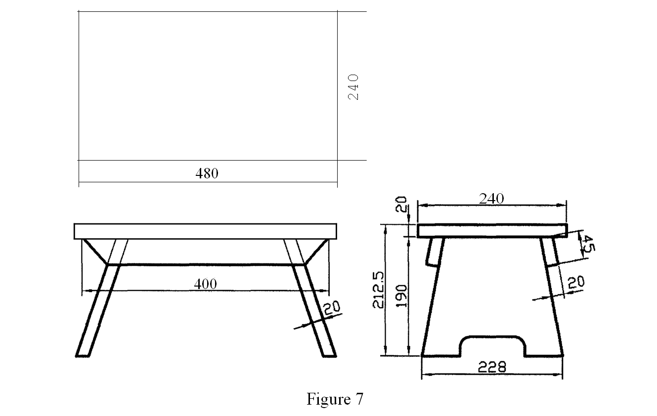 (b) Figure 7 shows three views of a kitchen stool.