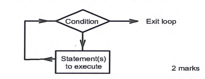 16. (a) With the aid of a flow chart, describe a loop control structure as used in programming.(4 marks)
