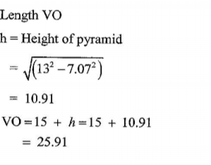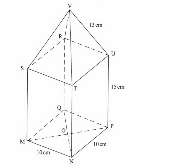 22. The figure below is a model of a watch tower with a square base of side 10 cm. Height PU is 15 cm and slanting edges UV = TV = SV = RV = 13 cm.