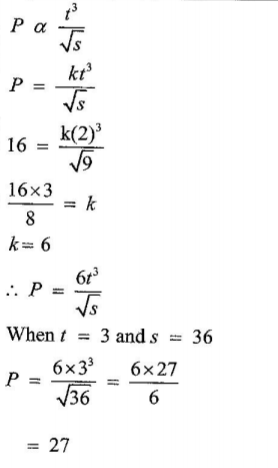 2. A variable P varies directly as t3 and inversely as the square root of s. When t = 2 and s = 9, P = 16. Determine the equation connecting P, t and s, hence find P when s = 36 and t=3. (4 marks)