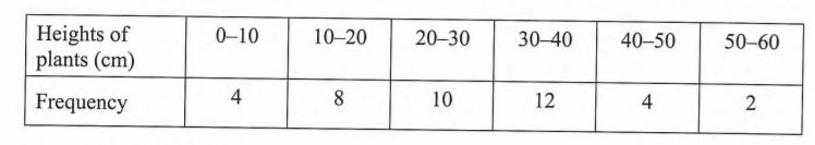 19. (a) The table below shows the frequency distribution of heights of 40 plants in a tree nursery.