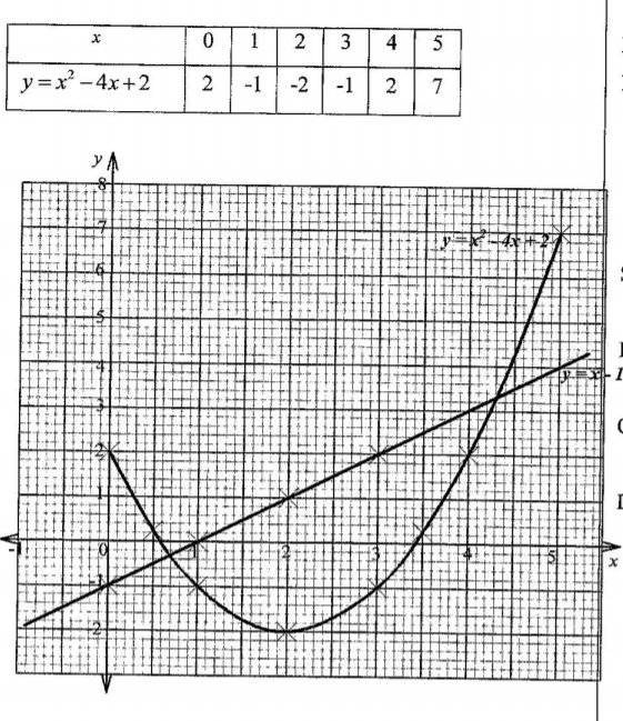 (d) By drawing a suitable line, use the graph in (b) to solve the equation A-2 — 5x + 3 = O. (3 marks)