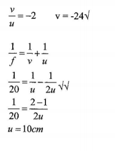 Image is virtual hence magnification = —2