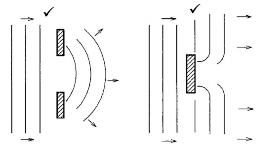 (b) Figure 9(a) and 9(b) show barriers placed in the path of plane waves.
