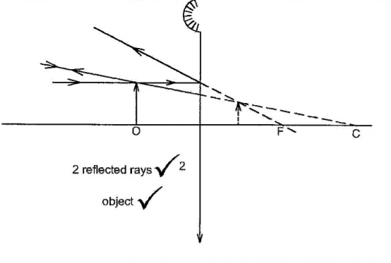 7. Figure 2 shows the image of an object O placed on the principle axis of a convex mirror.