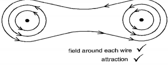 14. Figure 3 shows two current-carrying wires A and B passing through a cardboard.