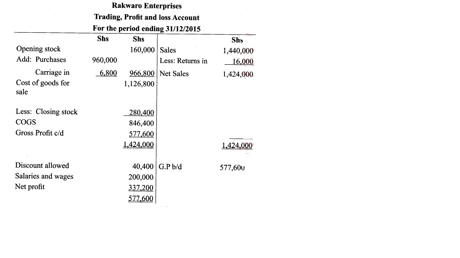b (i) Rakwaro Enterprises Trading, Profit and loss Account For the period ending 31/12/2015