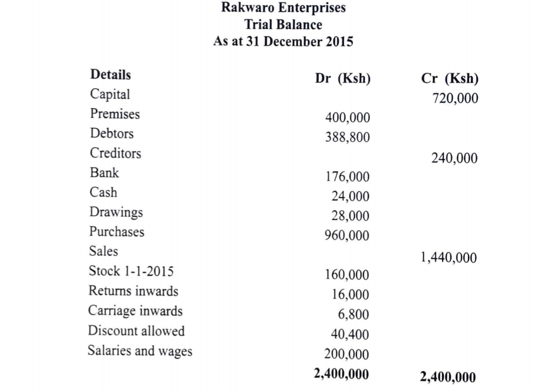 (b) The Trial Balance below was extracted from the books of Rakwaro Enterprises on 31st December 2015.