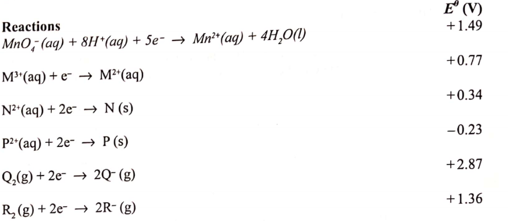 (ii) Select two half-cells which when combined will give the highest e.m.f. (1 mark)