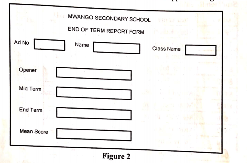 1.Form 1 Class Teachers of Mwango secondary school intend to use a data base to manage students o Secondary School intend to use a database to manage students performance in three examinations: opener,mid term and endterm examination.