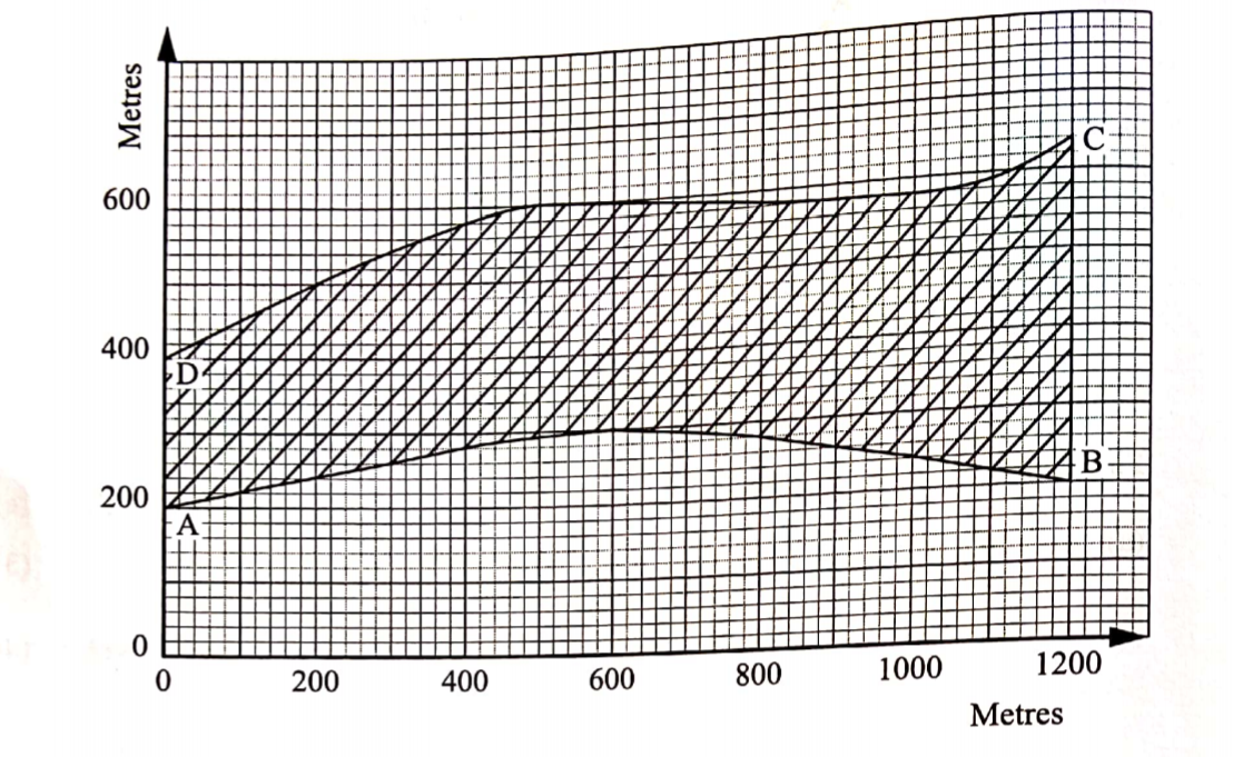 23. The shaded region on the graph below shows a piece of land ABCD earmarked for building a sub-county hospital.