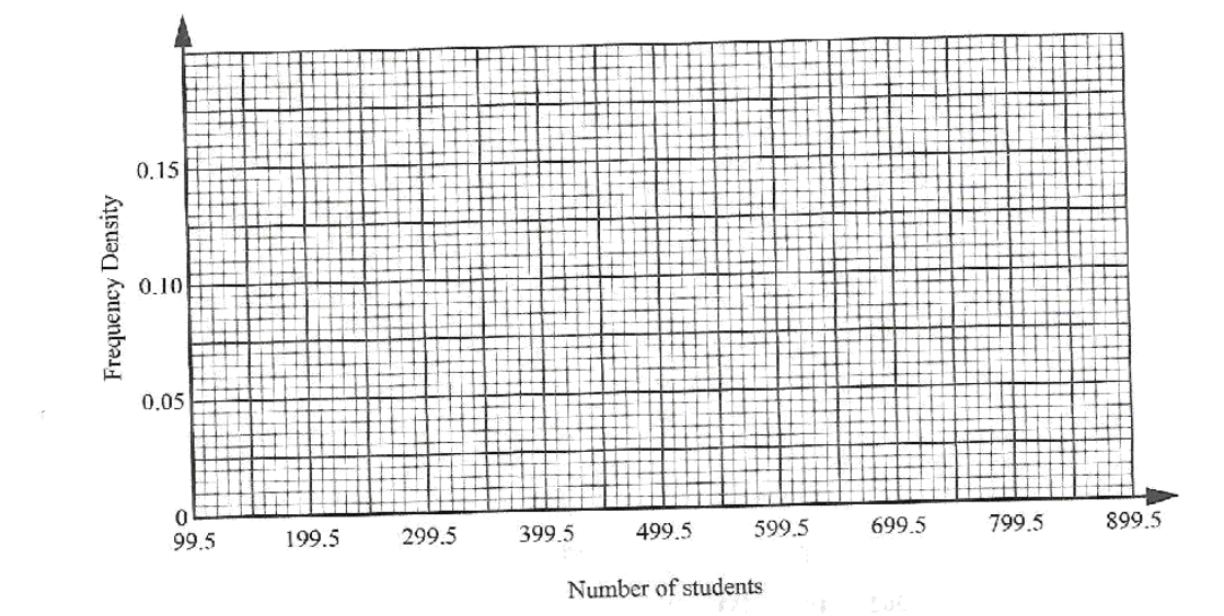 (b) On the grid provided, draw a histogram to represent the data.(4 marks)