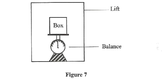 12. Figure 7 shows a box placed on a weighing balance. The balance is placed on the floor of a lift.