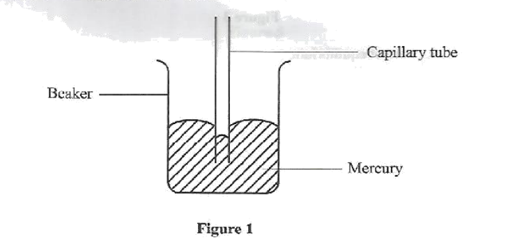 2. Figure 1 shows a capillary tube dipped in mercury in a beaker.
