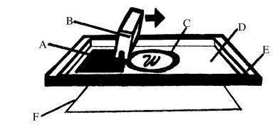 Name the pans labelled A-F and classify them under materials, tools and equipment. (6 marks)