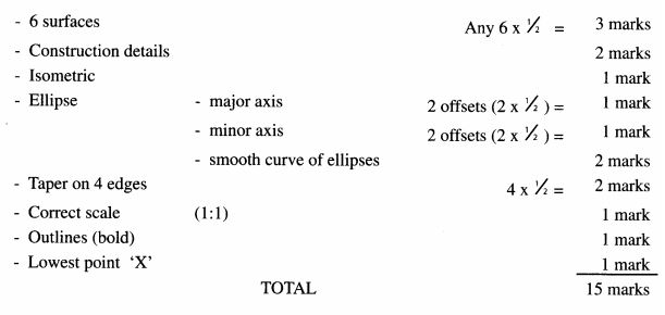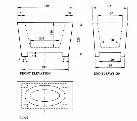 11 Figure 2 shows orthographic views of a vase drawn in first angle projection. To a scale of 1:1, draw an isometric view of the vase with point X as the lowest point.(15 marks)
