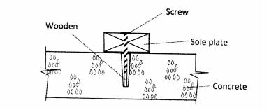 - position the sole plate and secure onto Wooden plugs with nails or screws
