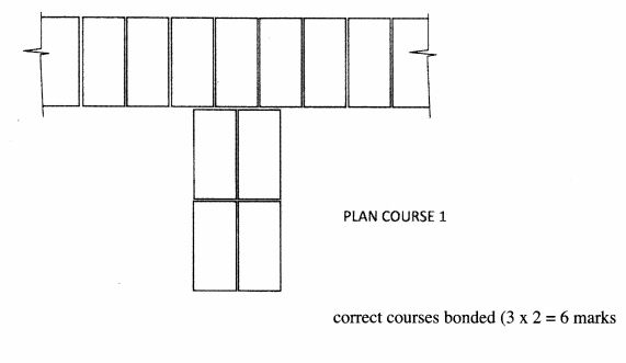 (b) Make a labelled elevational sketch of a three course honeycomb wall. (3 marks)