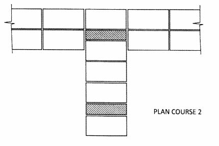 (b) Sketch alternate plan courses to show the bonding details of a T-junction wall in English Bond. (6 marks)