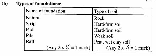 (b) Name two types of foundations and state the type of soil in which each may be used. (2 marks)