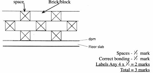 (b) Damp Proof Course (DPC) is used in a building to provide a barrier to the passage of moisture from an external source into the fabric of a building vertically/through the Wall