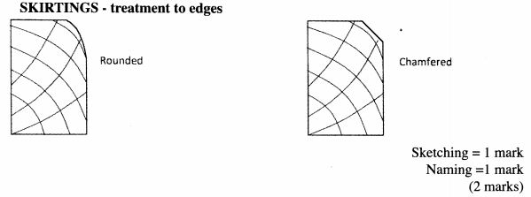 7 (a) Sketch two sections of timber skirtings showing the treatment given to the top edges. (2 marks)