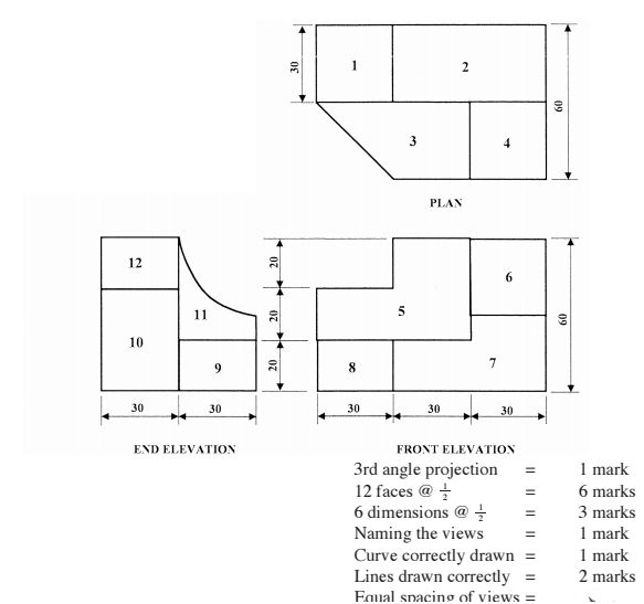 11. Figure 4 shows a pictorial drawing of a shaped block. (15 marks)