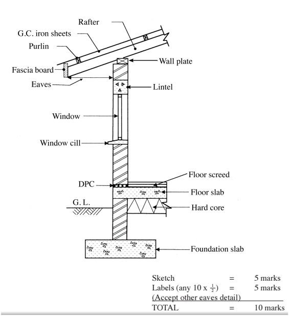 12 (a) State five functional requirements of masonry Walls in a building. (5 marks)