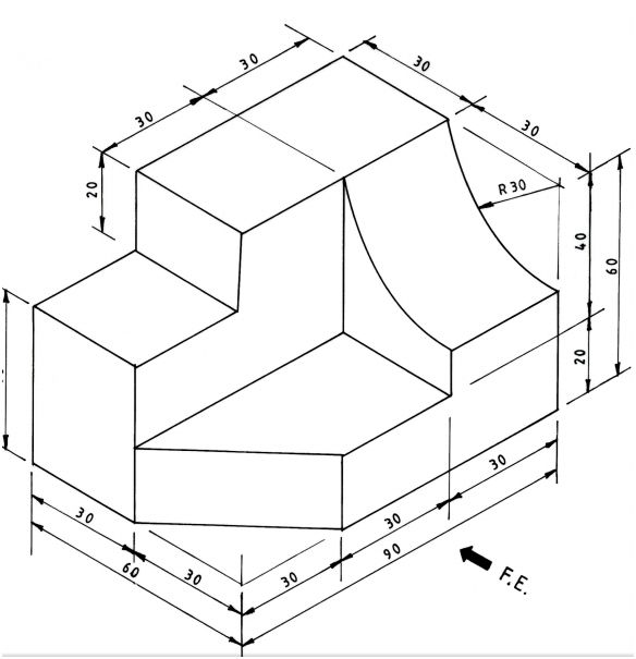 To a scale of 1:1 , draw three orthographic views of the block in 3'd angle projection.