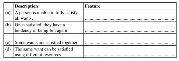 1 The following are descriptions of features of human Wants. Identify the features that relate to