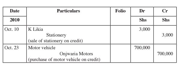 (a) 10"‘ October 2010, sold unused stationery for Sh 3,000 on credit to K. Likia.