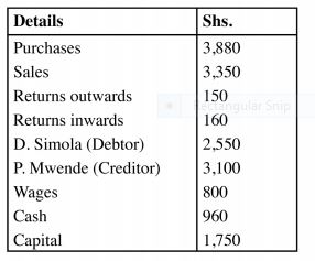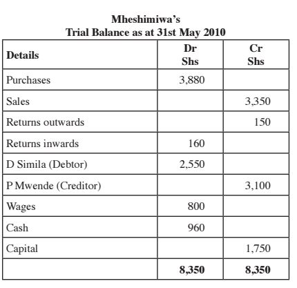 Required: Prepare Mheshimiwa’s trial balance as at 31*‘ May 2010. (5 marks)