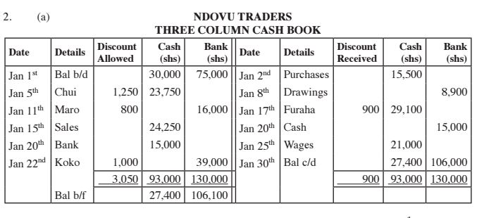 2 (a) On first January 2012, Ndovu Traders had shs 30,000 in cash and shs 75,000 at the