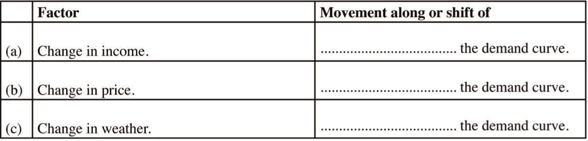 9 In the spaces provided below, indicate whether the following factors cause movement along the