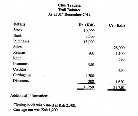 4 (a) The following trail balance relates to Chui Traders as - at 31st December, 2014.