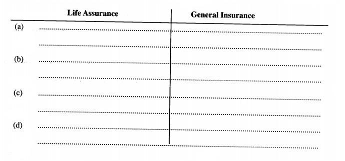 9 State four differences between life assurance and general insurance.(4 marks)