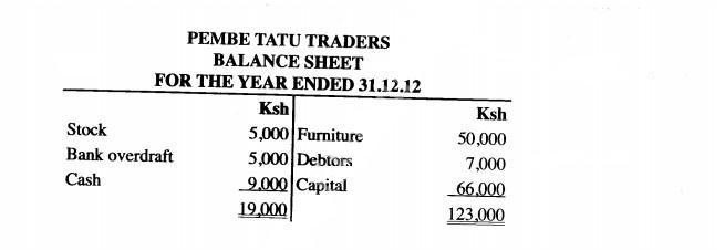 20 The following information relates to Kahawa Traders as at 31st December 2012.