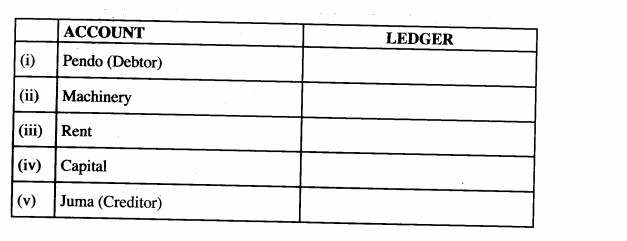 15 Identify the ledgers in which the following accounts are maintained. (5 marks)