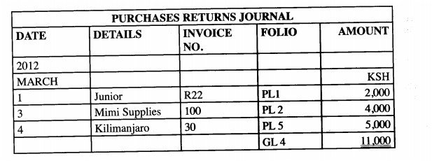 18 The following Purchases Returns Journal relates to Farasi Traders: