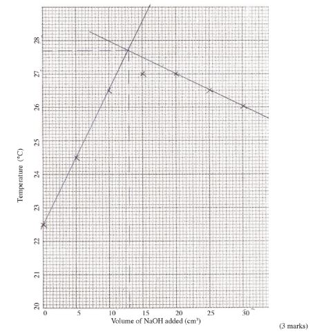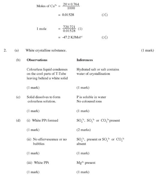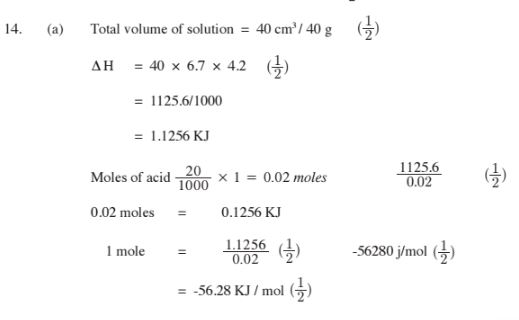 (iii) enthalpy change of the reaction per mole of copper (ll)ions. (3 marks)