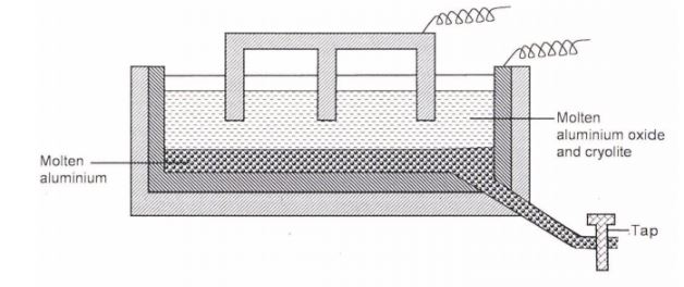 6. The diagram below represents a set up of an electrolyte cell that can be used in the production of aluminium