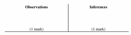your observations and inferences in the spaces provided.