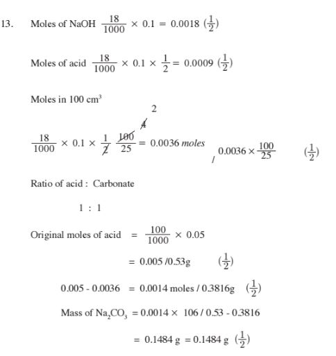 13 100 cm3 of 0.05 M sulphuric (VI) acid were placed in a flask and a small quantity of anhydrous