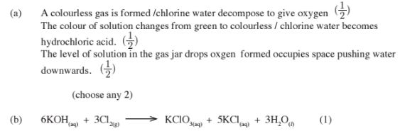 (b) Write the equation for the reaction between chlorine and hot concentrated potassium