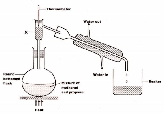 22 The set up below was used to separate a mixture of methanol and propanol. Study it and