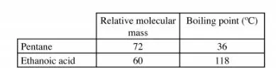 9 The table below shows the relative molecular masses and boiling points of pentane and