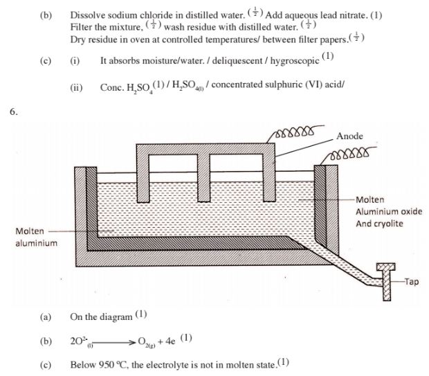 (b) Starting with solid sodium chloride, describe how a pure sample of lead (ll) chloride