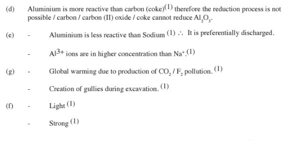 (e) Give two reasons why only the aluminium ions are discharged (2 marks)