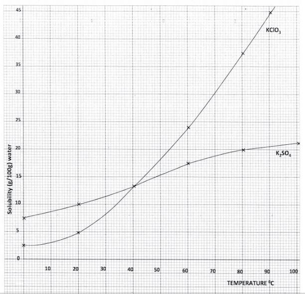 (b) The table below shows the solubility of potassium sulphate and potassium chlorate