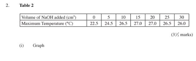 in (c) above, stir and record the maximum temperature reached in Table 2. Continue
